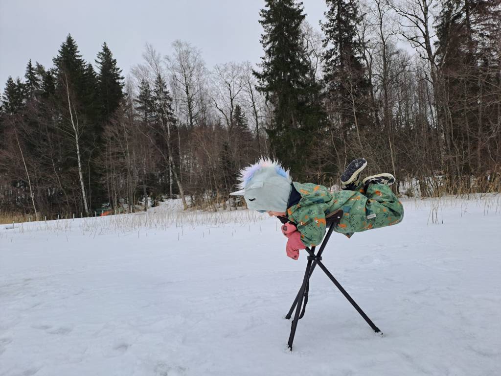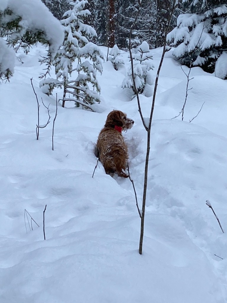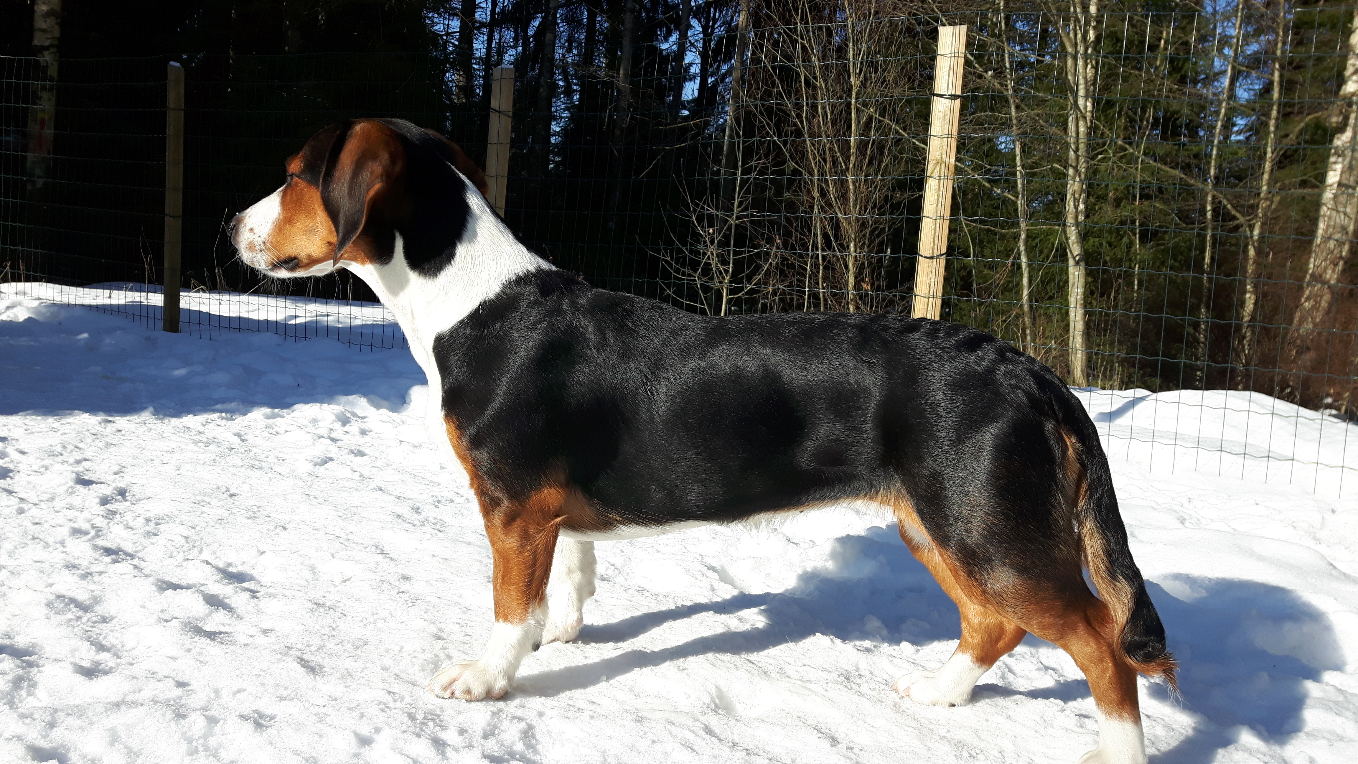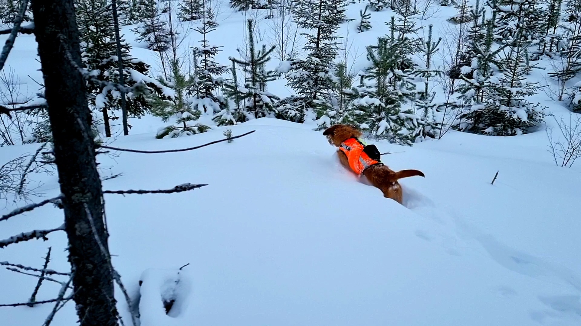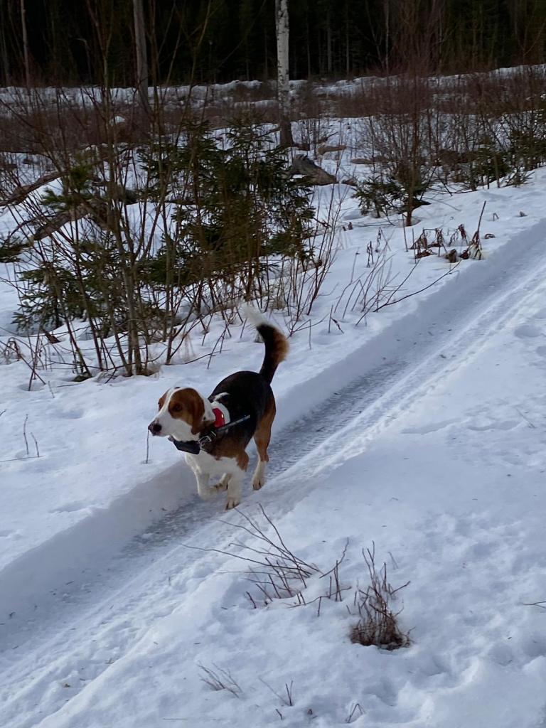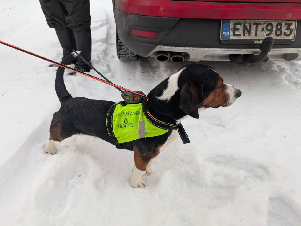 Kokeen toinen bretagnenbassetti, Eppu, sai sekin rankan lumessa kahlailun jälkeen ylös ajoeläimen, jota ajoi komeasti. Valitettavasti otus oli ”väärää” sorttia eli hirvi. Niinpä runsaan 40 minuutin ajosta ennen kiinni saamista seurauksena oli hylkäys.
