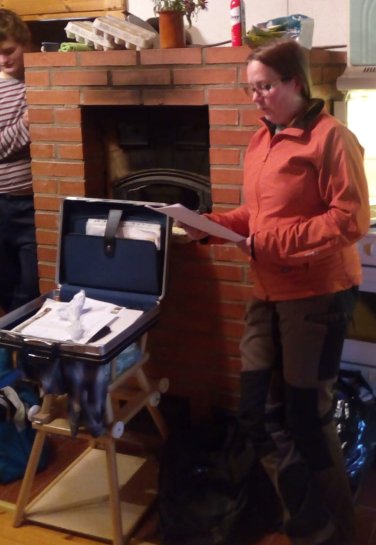 Kahden sukupolven osaamista: kokeen uusi ”tuliterä” koetoimitsija/koesihteeri Teija Rantti ja veteraaniylituomari Timo Nurmiluoto pääsivät kokeen päätteeksi julistamaan ilahduttavan komeita tuloksia. Täydellä syyllä Porvoon talvikoetta alettiinkin asetella mukaan Uudenmaan dreeverikerhon perinteikkäiden kokeiden ohjelmaan.